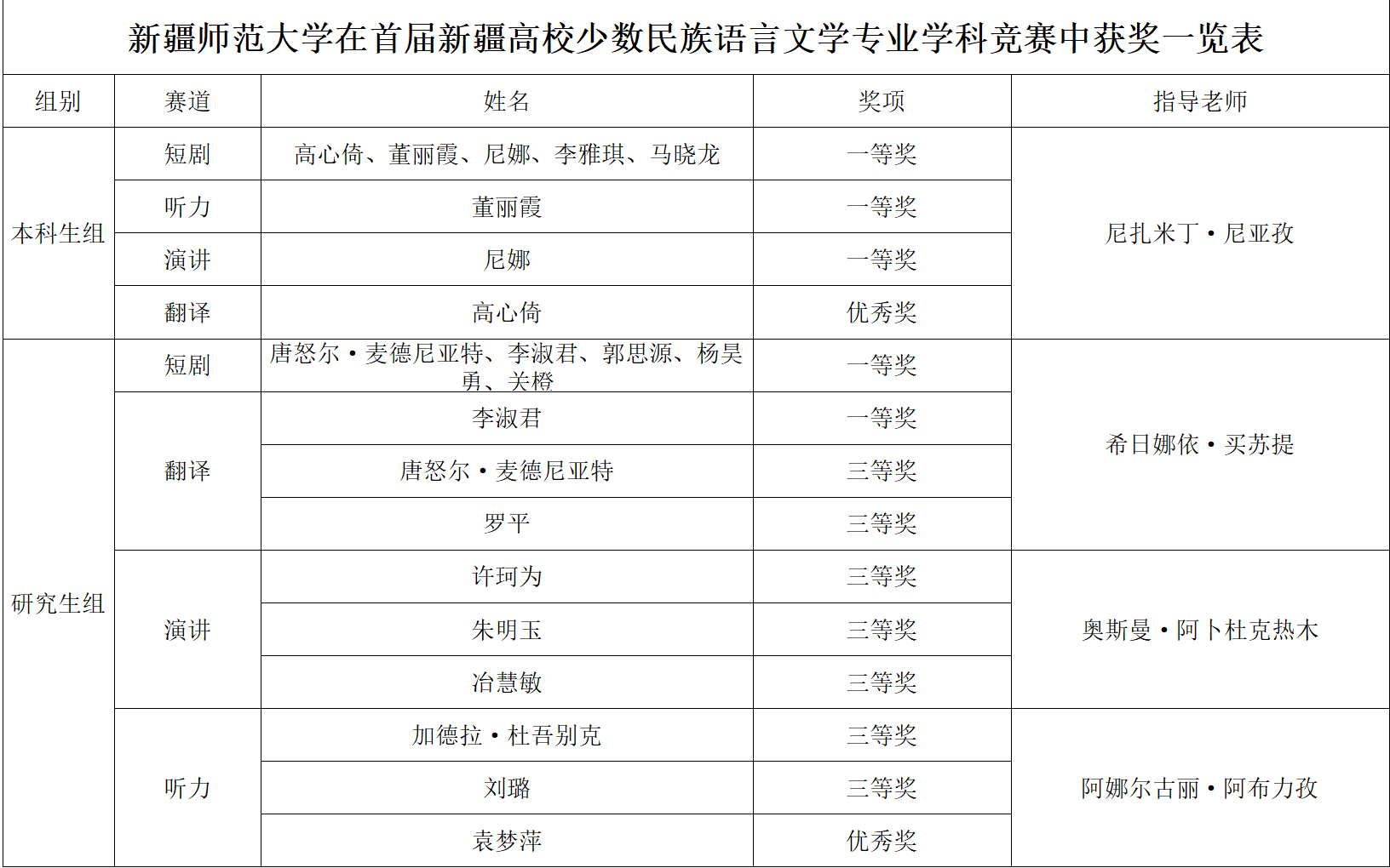 新疆师范大学在首届新疆高校少数民族语言文学专业学科竞赛中斩获佳绩
