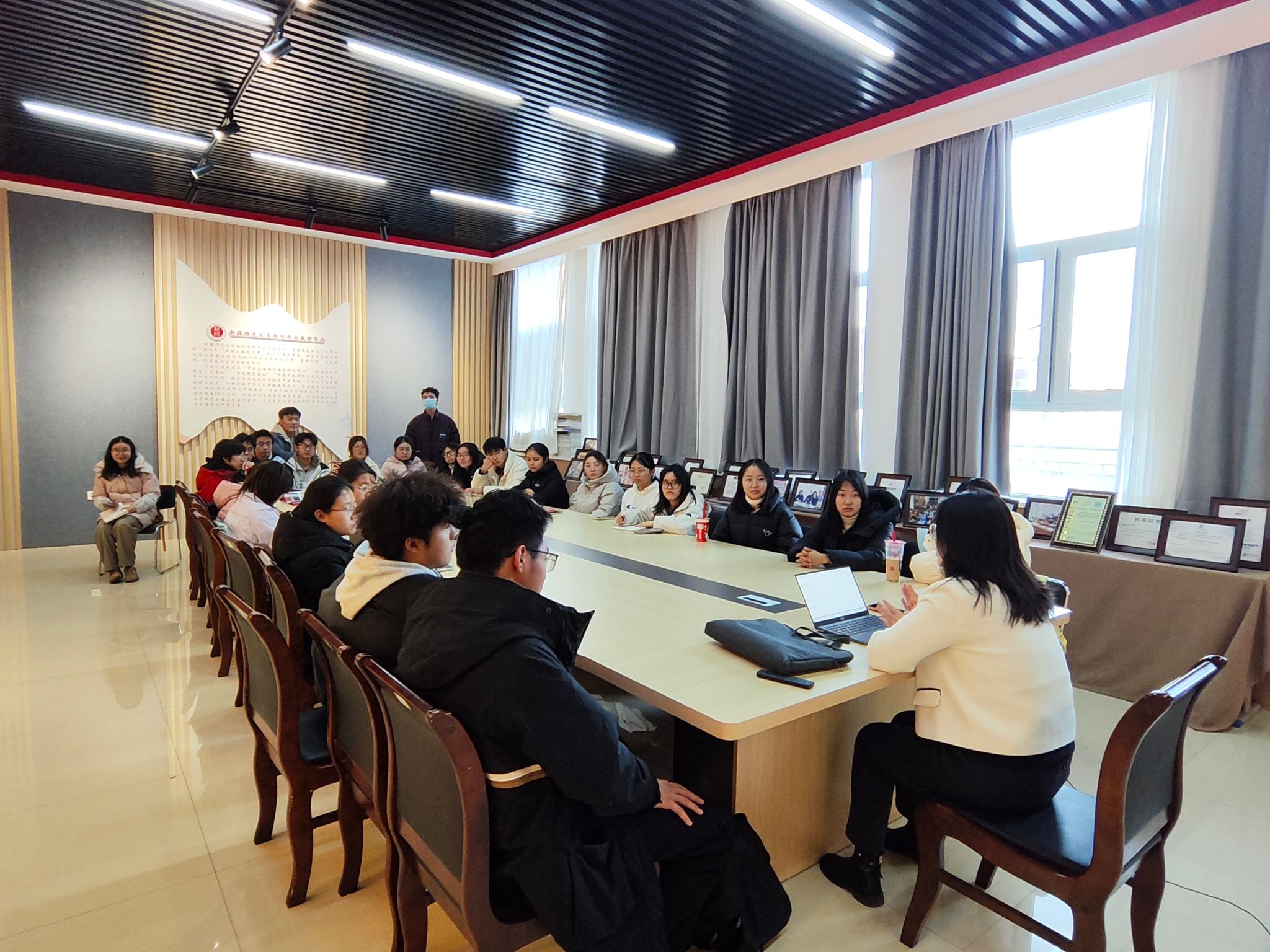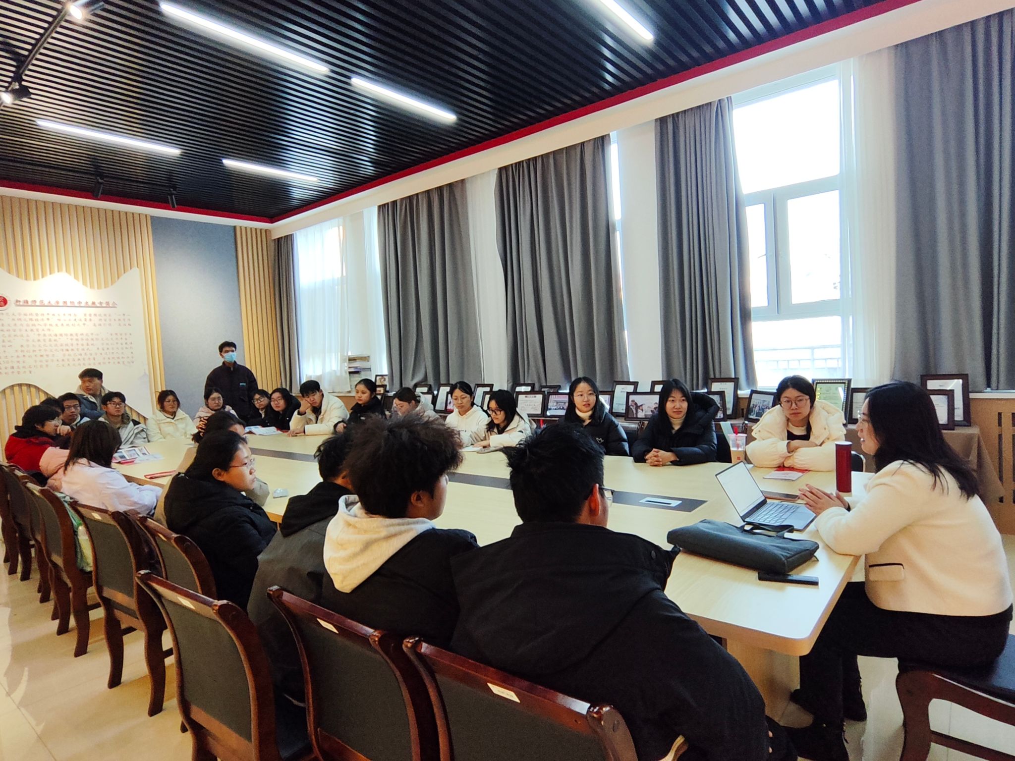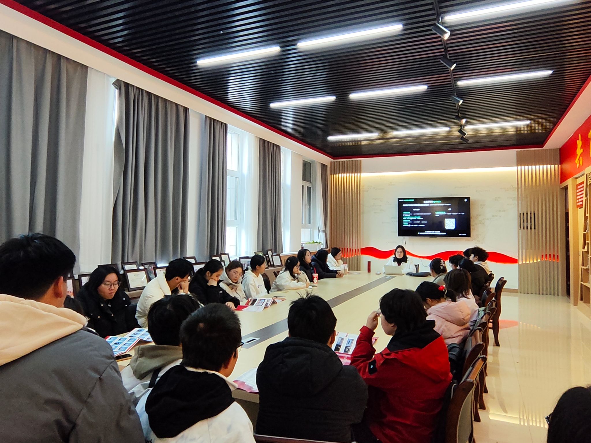 随后的“讲好新疆故事”专题研讨环节,现场互动氛围热烈。陈老师引导学子围绕“核心找准”“形式创新”“效果落地”三个关键问题展开交流。大家达成共识:讲好新疆故事,首先要立足新疆多元一体的历史文化格局与深厚的红色传承,提炼如学校红色校史这般具有代表性的精神内核,以真实为基、以精神为魂;其次要探索多元传播形式,《红流》的舞台化尝试便是成功范例,活动中陈老师展示的我校黄河歌唱队在乌鲁木齐各大中小学的展演视频,让学子们直观感受到文化传播“走出去、沉下去”的重要意义;最后要注重传播效果,既要让新疆故事被听见,更要让其中的精神力量被理解、被传承。