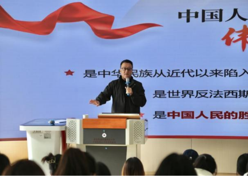 80年前,中国人民以钢铁般的不屈意志浴血奋战、抵御外敌,最终赢得了这场事关民族存亡的伟大胜利,铸就了永垂史册的精神丰碑。为铭记历史荣光、传承抗战精神、坚定民族信念,中国语言文学学院特于2025年10月15日,在四号教学楼118教室隆重开展“校领导讲第一课”专题活动。
